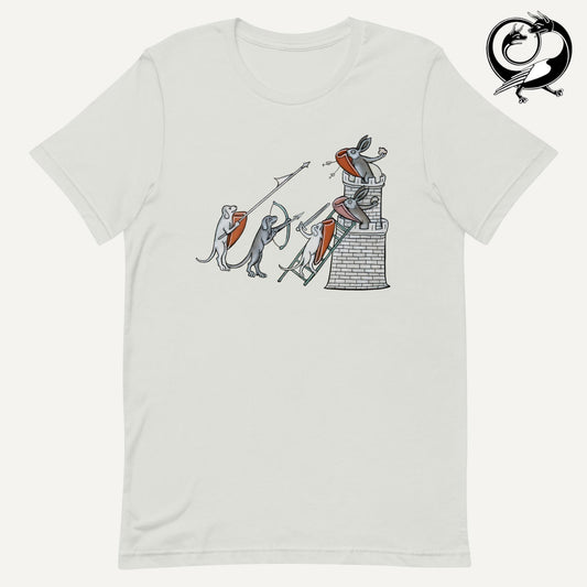 Dogs besieging th Bunny Castle - Medieval Marginalia - Unisex T-Shirt