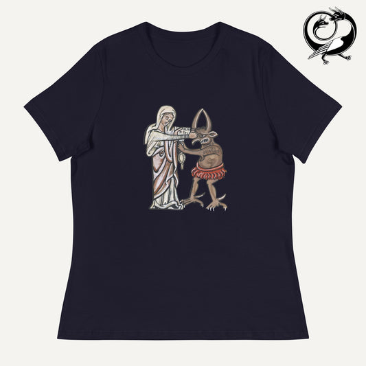Lady punching a Demon - Medieval Marginalia - Women's T-Shirt