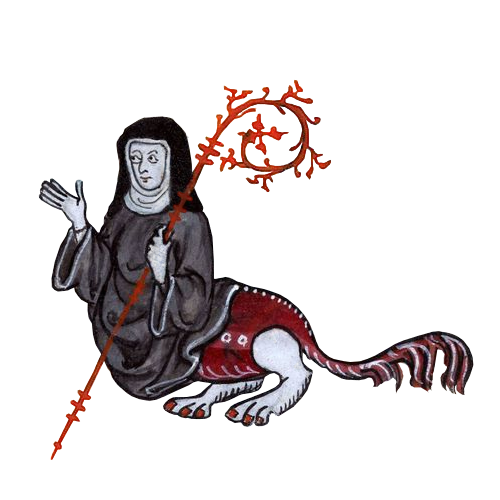These strange hybrids often depict clergymen and nuns. Most likely, they were intended as satire. In the Middle Ages, human-animal hybrids, like the centaur, the satyr, or the mermaid, were often seen as lustful creatures. These animal-legged monks and nuns were perhaps meant to criticize those who broke their oaths of celibacy.